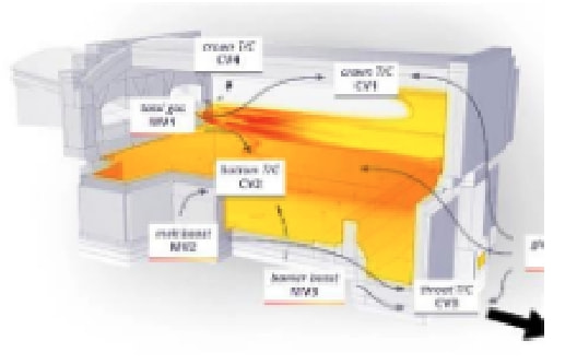 ガラス溶解炉の制御ではフィードバック制御が一般的ですが、溶融ガラスの低い熱伝導率、高粘度により、入力(例えば、燃焼ガス量を増やす)→出力(ボトム温度の上昇)は非常に反応遅いため、制御が難しくなっております。ESⅢでは数週間の炉の操業データをコンピューター解析し入力と出力の時間関数を計算します。それにより、入力による出力への影響を予測し、フィードフォワード制御が可能となり、安定的な操炉が可能となります。この制御技術は現在、世界中で約200炉に採用されており、大幅な省エネと品質向上に貢献しております。